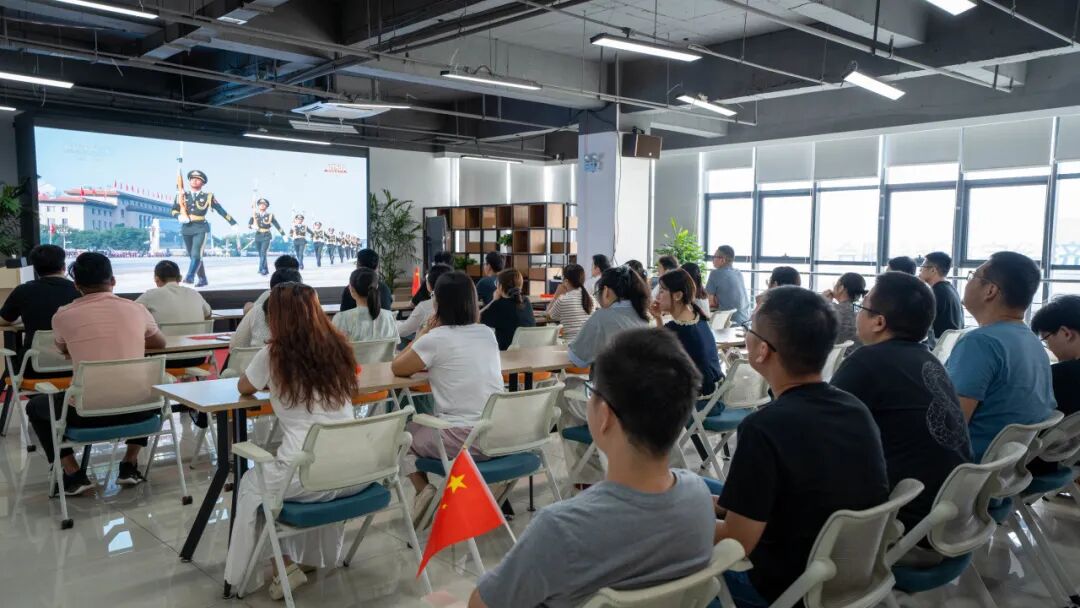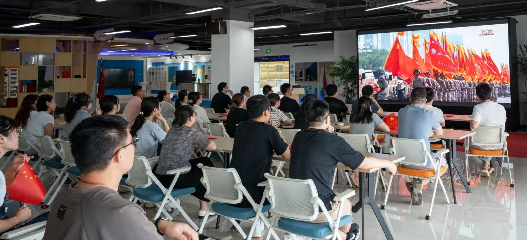 九三阅兵式是纪念中国人民抗日战争暨世界反法西斯战争胜利80周年活动的重要组成部分。为共同见证这一具有重大的政治意义和深远的历史意义的纪念活动,中科美络多功能会议厅内座无虚席,全体员工精神饱满地聚焦屏幕。